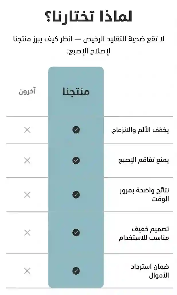 من خلال إعادة محاذاة إصبعك بلطف وتدريب العضلات الداعمة، يساعد هذا المصحح على علاج التشوه، وتخفيف الألم، ومنع عودته مجدداً، وكل ذلك وأنت في منزلك.